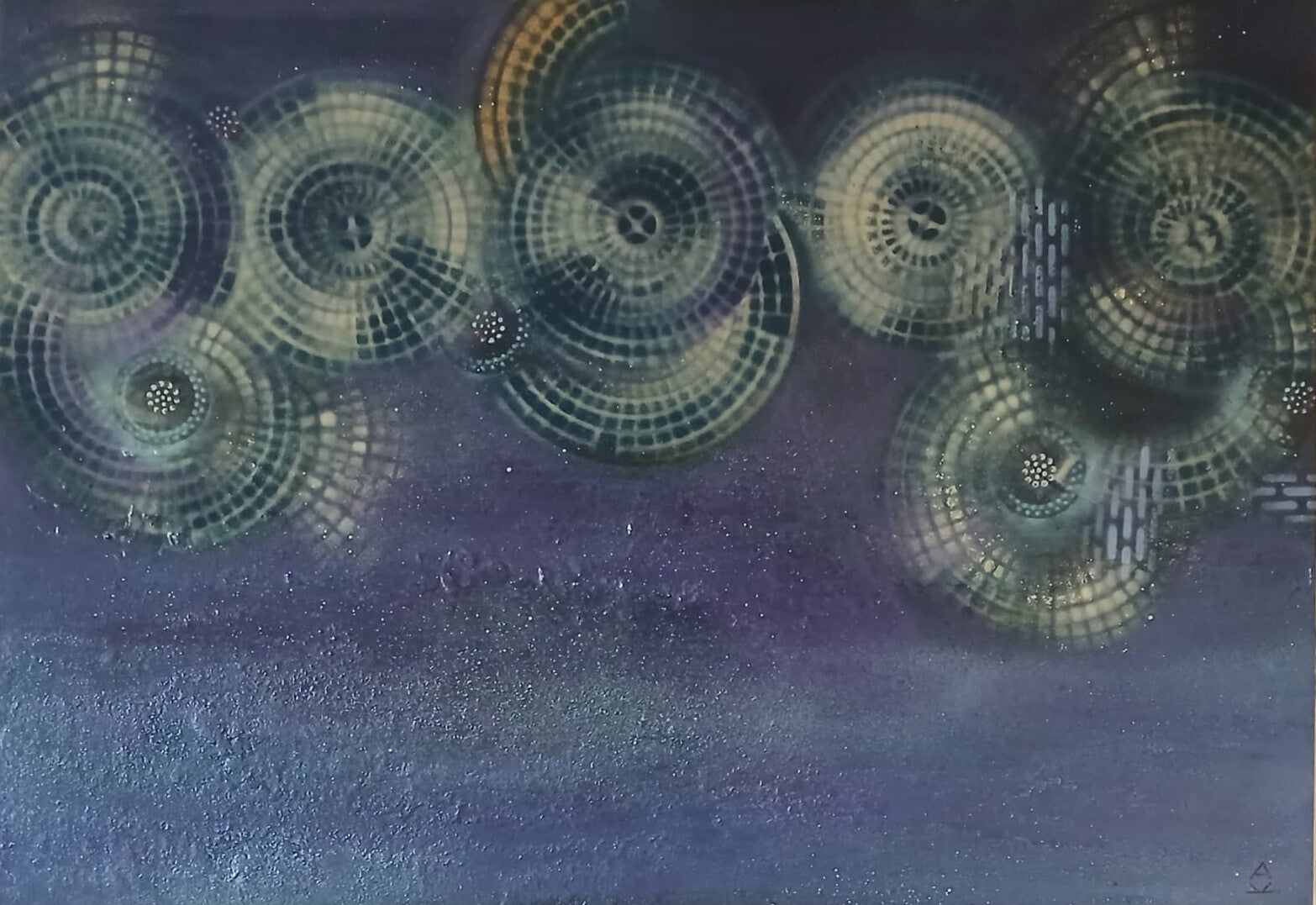 40x50 Acryl, Struktur, Metallelemente auf Leinwand